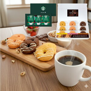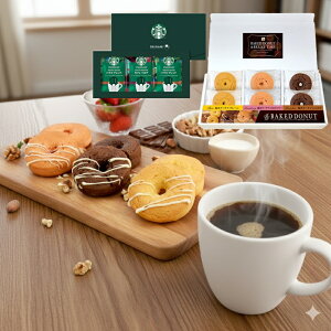 セット内容:スターバックス オリガミ (ハウスブレンド(3袋)・カフェベロナ(2袋))×1、ベイクドドーナツ(プレーン・ストロベリー・ショコラ)×各3箱サイズ:21.5×34.8×9.8cm賞味期間:製造より約180日アレルギー:卵・...