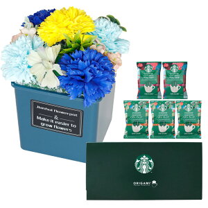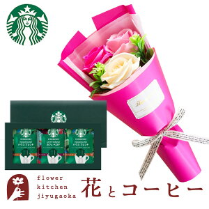 ソープフラワー&コーヒーのギフトセット 【忙しい日々の中で、ほっと一息つけるひとときを過ごしてほしいあの人へ】 香りと彩りに癒されるソープフラワーと、人気カフェ「スターバックスコーヒー」のドリップコーヒーのギフトセット