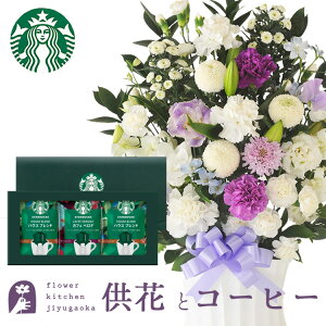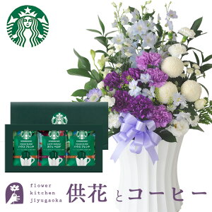 商品詳細 【11000供花アレンジメント】 アレンジ:幅約33cm×高さ約60cm 【スターバックスオリガミパーソナルドリップギフト】 内容量:ハウスブレンド9g×3袋 カフェベロナ9g×2袋 ご注文後に当店より”受付完了メール”が...
