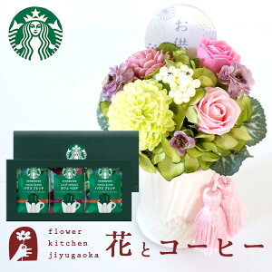 商品詳細 【商品内容】 アレンジ:高さ約20センチ 直径約18センチ ※花材によってサイズが変ることがございます。 【スターバックスオリガミパーソナルドリップギフト】 内容量:ハウスブレンド9g×3袋 カフェベロナ9g×2袋 ご注文後に当
