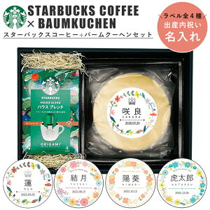 「スターバックス オリガミR」とプレミアムバームクーヘンをセットにした、当店オリジナルのスタバギフトセットです。 名入れラベル付きで、お子様の誕生をお祝いしてくださった方への御礼にピッタリなギフトです。 高級感のあるブラッ