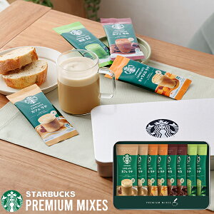 ■スターバックスの味わいをご自宅で簡単に楽しめるプレミアムミックスが入ったギフト。 【商品内容】 ●スターバックスプレミアムミックス(カフェラテ14g×2、キャラメルラテ23g×2、カフェモカ22g×2、抹茶ラテ24g×2)(スティッ...