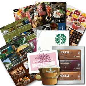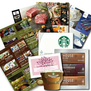 ●カタログギフト×1、スターバックス オリガミ ハウスブレンド×3袋、スターバックス オリガミ エスプレッソロースト×2袋、ホワイトシュガーラスク(2枚)×3個●箱33.8×23.3×11.9cm(日本製)●賞味期限/210日(製造日...