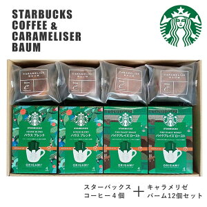 「スターバックス オリガミR」2種とキャラメリゼミニバウム12個をセットにした、当店オリジナルのスタバギフトセットです。 おしゃれなクラフトBOXにお入れしてお届けします。 バウムクーヘンは縁起の良いお菓子とされ、引き出物や内祝い
