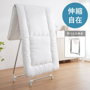 幅の調節ができる伸縮タイプのふとん干しです。ふとんが2枚干せます。衣類も干すことができます。落ち着いたマットな質感なので部屋馴染みが良いです。軽くて持ち運びがラクに行えます。