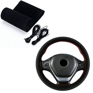 ハンドルカバー 編み込み式 ステアリングカバー 手縫い 通気性 人工スエード生地 直径38cm 超薄い触感 滑り止め 持ちやすい 手触りよし オールシーズン対応(黒赤のライン)【材質】上質なスエードを採用して夏は涼しく...