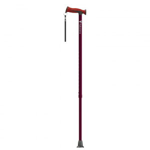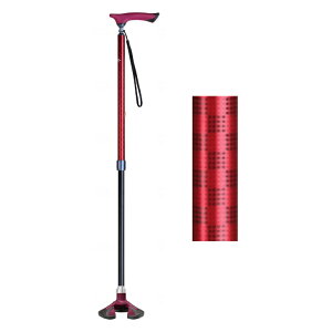 一本杖,スマイルステッキ,FS-20RF 【商品説明】 高級家具調の木製グリップ ●滑りにくい密着タイプの先ゴム ●伸縮5段階調節可能(2.5cm間隔) ●アルミ製支柱 ●折りたたみ可能 ●カラー:赤花柄...