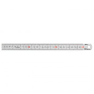 ステンレス製の直尺ですので、カッターを使っても安心です。ステンレススチールのシルバー仕上げです。●目盛長:300mm●厚さ:1mm●幅:25mm●材質:ステンレススチール・シルバー仕上JAN:4977564019372