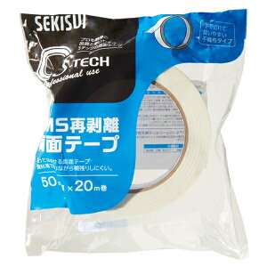 SMS再剥離両面テープ 50MM×20M 粘着力が強くステンレスや硬質プラスチック面、ガラス面などに貼り付け可能。 製品仕様 ●寸法:幅50mm×20m ●テープ厚:0.12mm ●用途:ステンレス,硬質プラスチック...
