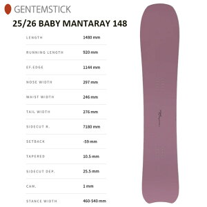 MANTARAYをウィメンズライダー向けにスケールダウンしたレングス1480mm、ウエスト246mmのオールラウンドモデル。 MANTARAYと同じショートキャンバーシステムとロッカーライン、注目度満点なルックス。