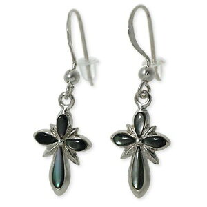 【ご注意ください】ピアスは衛生上の観点から返品不可となっております。天然の美しい輝きを放つブラックシェルがあしらわれた、クロスのシルバーフックピアスです。ワイルドな雰囲気と可愛らしさと両方を併せ持つ、FREE STYLEらしいデザ