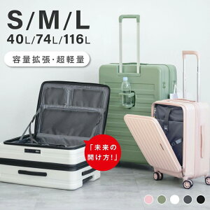 ?【フロントオープン&拡張機能付き】立てたまま荷物の出し入れができる便利なフロントオープンスーツケースです。15.6インチまでパソコンやタブレット、パスポートなど荷物に合わせた細かなポケットがあり、空港や新幹線の中...
