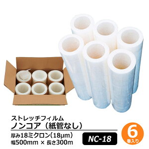荷崩れ防止や荷物の保護に便利なフィルム・メーカー品名:TRUSCO ストレッチフィルム 厚みμ18X幅500mmX長さ300m・メーカー品番:SF18500・厚さ18μ、幅500mm×長さ300m・紙菅径3in、透明タイプ