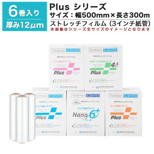 紙管内径 3インチ 入り巻数 6巻セット 商品について エッジ強化タイプのパレット梱包用ストレッチフィルム(手巻用)Plusシリーズは、特殊な加工技術でフィルムのエッジ(両...