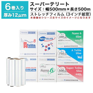 荷崩れ防止や荷物の保護に便利なフィルム・メーカー品名:TRUSCO ストレッチフィルム 厚みμ6X幅500(485)mmX長さ750m・メーカー品番:TERSF6500・厚さ6μ、幅500mm×長さ750m・紙菅径3in、透明タイプ