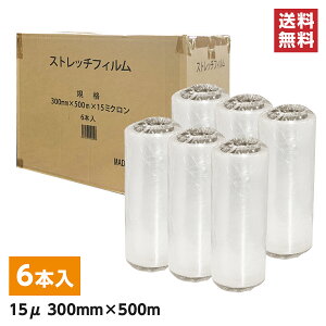 【商品説明】 Stretch Film(ストレッチフィルム) 長さ:300m 幅:500mm 厚さ:15μ(ミクロン) 入数:6ロール ・商品の梱包などに ...