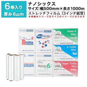 500mm×1000m 紙管内径 3インチ 入り巻数 6巻セット 商品について エッジ強化タイプのパレット梱包用ストレッチフィルム(手巻用)Plusシリーズは、特殊な加工技術でフィルムのエッジ(両端...
