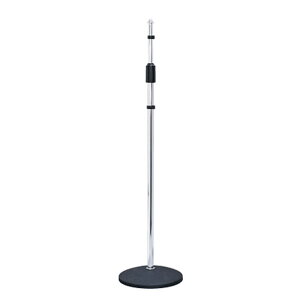 土台が円盤型で重心も低く、安定感のあるストレート型のマイクスタンドです。 マイクホルダーが付属し、Φ25ぐらいまでの一般的なダイナミックマイクロホンに使用可能です。ワイヤレスマイクなど、持ち手が太いタイプは使用できません