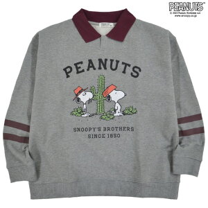 大人気スヌーピーのスヌーピー&スパイク柄裏起毛衿付きトレーナーです 可愛いスヌーピーとスパイクが可愛くデザインされた襟付きのトレーナーで裏起毛素材なので 暖かく寒い日でも着用しやすい一枚になっていますカラーは杢グレー...