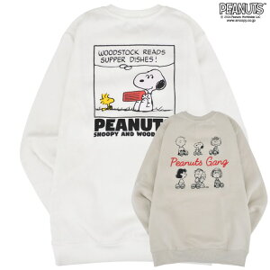 [ヨシダユウ] スヌーピー 長袖 トレーナー スウェット 裏起毛 バック プリント トップス SNOOPY PEANUTS