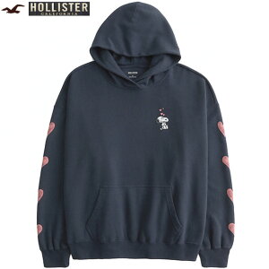 【宅急便送料無料】Hollisterレディース フリースパーカー Hollister Co.ホリスター レディース オーバーサイズ スヌーピー グラフィック フーディー カラー ウォッシュドネイビー 平置実寸サイズ...