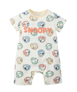 スヌーピーのかわいいキャラクターが散りばめられた、綿100%のジャガード接結素材を使用した長袖カバーオールです。design・ナチュラルなアイボリー色で、男女問わず使いやすいデザイン・全体にスヌーピーとPEANUTSの仲間たちのイラス...