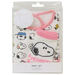 プレゼントにも最適なビブと赤ちゃん用ソックスセット贈り物/お祝い/くつ下/よだれかけ/可愛い大人気[PEANUTS/SNOOPY]のベビーグッズシリーズこちらはかわいい[ビブ&ソックスセット]出産祝いなどのギフトにもぴったりデザインい...