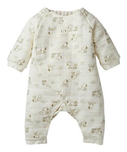 スヌーピーのかわいいキャラクターが散りばめられた、綿100%のジャガード接結素材を使用した長袖カバーオールです。design・ナチュラルなアイボリー色で、男女問わず使いやすいデザイン・全体にスヌーピーとPEANUTSの仲間たちのイラス...