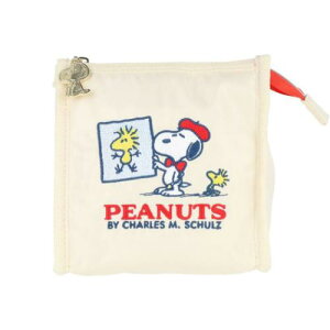 ピーナッツデザインのフラットポーチです。 人気のウッドストック柄。 鞄の中ですっきり使える。 仕切り付きの内ポケットがあり、細かく整理できて使いやすい。 小物やメイク道具を入れてインバッグに! いろいろ使える便利なポーチ。