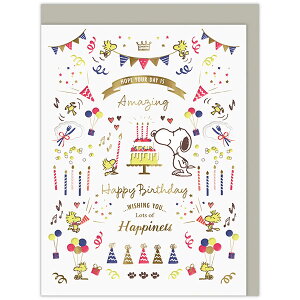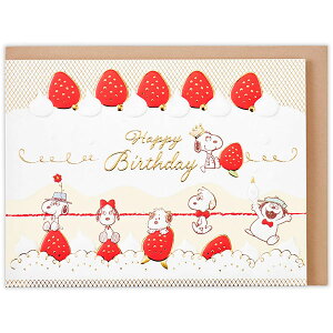 ●大きないちごケーキにちまっと描かれたスヌーピーときょうだいたちが可愛らしいバースデーカード。 ●金箔加工をメインにしたシンプルな色合いに赤いいちごが映えるデザインです。 ●カード:100×132mm...