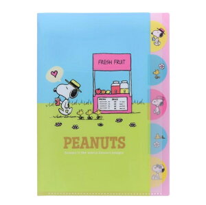 スヌーピー×春らしいカラー 【特長】用途別に収納できる5ポケットインデックス付きのクリアファイル 【ポケット数】5個 ダイカットのインデックス付き 【サイズ】225mm×310mm×2mm 【材質】PP