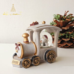 まるでアンティークの彫刻のようなクラシカルな部分に可愛らしい一面をのぞかせるキュートなスノードーム。 おちゃめなサンタとスノーマンが一ポーズしています。 今から、プレゼント配りにいくのでしょうか。 枕元に届くのを楽しみに