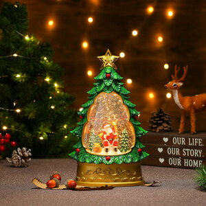 「人気の高いクリスマス飾りのスノードーム」 クリスマスプレゼントを配るサンタさんの姿と美しく雪化粧したもみの木が収められたクリスマスツリー形のノードームです。クリスマスムードをたっぷり味わえて、ゆらゆらと舞い降りる雪景
