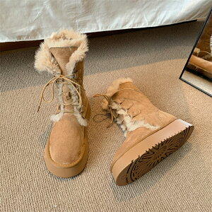 防寒ブーツ 撥水保温!ラウンドトゥのつま先丸いかわいいフォルムは、つま先ゆったりで楽な履き心地に。おしゃれと実用性の両立!カジュアルからエレガントまで、どんなスタイルにもマッチするおしゃれなデザイン。ボリューミーな厚底
