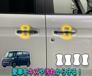 ■スペーシアカスタム専用 車外 ドアハンドルプロテクションフィルム 4点 ■フィルムカラーは透明プロテクションフィルムです。 ■透明プロテクションフィルムは疎水機能がある傷再生機能付きのプロテクションフィルムです。 ※シー