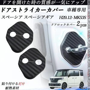【商品説明】 スペーシア スペーシアギア MK53S H29.12- 対応のドアストライカーカバー ドアストライカーに装着することで、車内を引き締め、高級感を演出します。 【セット内容】 ドアロックカバー×2p...