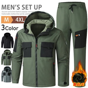 商品情報 商品名 ウインド 上下セット メンズ アウトドア 防寒 裏起毛 ウインドブレーカー 上下 セットアップ アウター マウンテンパーカー トレッキングパンツ 登山服 作業服 素材 ポリエステル カラー おなんどいろ グリーン 黒...
