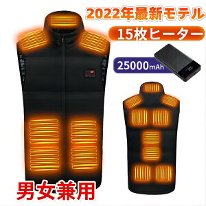 13エリア 20000mAhバッテリー付き適 応サイズS-4XL素材ポリエステル・コットンカラーブラックお勧めポイント・電熱ベスト一枚で冬の防寒対策が万全!前面に6箇所、背面に7箇所、合計13箇所の炭素繊維ヒーターが内
