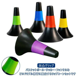 バスケットボール・サッカー・フットサルなどのドリブル練習に重宝するリップコーンセットです。取っ手部分に滑り止めラバーグリップを完備しており、滑りにくく汗をかいた手でも掴みやすくなっています。底面が末広がり形状になって