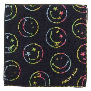 「ハンドタオル」 スマイリーフェイス グッズ ミニタオル キャラクター タオルチーフ ニコネオン 吸水&手触りもバツグンのコットン100% 世界中で愛されている[Smiley Face/ニコちゃんマー...
