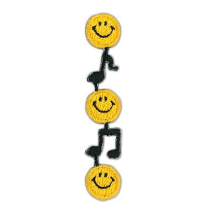 子供から大人まで幅広く安定して人気のある入園入学スマイリーシリーズ。シールアイロン接着の小さいサイズのワッペン、音符スマイリーです。 商品本体サイズ:幅約10mm×高さ約60mm 入数:1枚 素材:表糸/レーヨン、裏糸/ポリエステル、基
