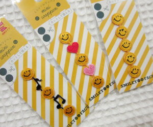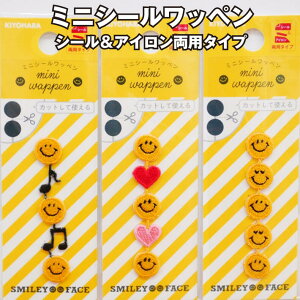 ミニシールワッペン マスクや靴下のワンポイントに使える、スマイリーのシール&アイロン接着ミニワッペンです。シールタイプなので本やノートにもくっつきます。(1枚入り) ★接着方法 シール・アイロン接着 両用タイプ ★サイズ 画像