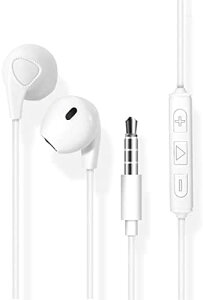 有線 イヤホン マイク内蔵 リモコン付き スマートフォン 通話対応 音量調整 耳入れ式 3.5 mmジャック 多機種対応i-phone/Pad/Android/PC多機種 (White)