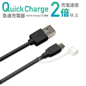★メール便不可商品★※メール便を選択された場合は宅配便に変更(送料も変更)して発送します 「クイックチャージ2.0」「急速充電2」に対応した急速充電USB充電・通信ケーブルです。 通常の充電器よりも2倍以上早く充電する事ができるク
