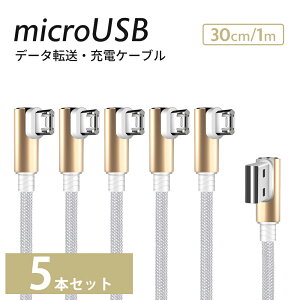 【お得な5本セット】30cm / 1m【ブラック・ホワイト】 micro USB L型 充電 ケーブル Android用 スマートフォン スマホどちらからでも挿せるリバーシブルコネクタマイクロ USB ※特価販売のため、初期不良交換の...