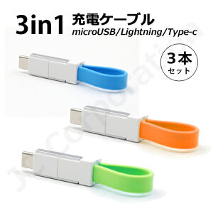 商品説明 1本で3種類の端子が充電できる、3in1充電ケーブルです。 Micro USB、Lightning(iPhone)、タイプC(android等)をこの1本で使えます。 iPhone、Android、等を最大3台を同時に充電可...
