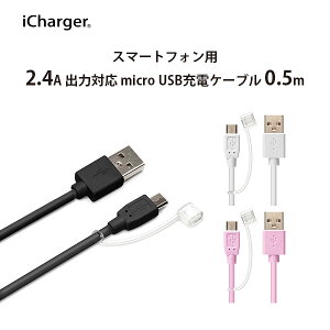 スマートフォン端末の充電に便利な「micro USBコネクタ USB充電ケーブル」0.5mです。 ホコリやキズからコネクタを守るキャップ付きでコネクタ長持ち。 電流2.4Aまで対応するので電流の高い家庭用USB電源アダプタもご使用頂け...