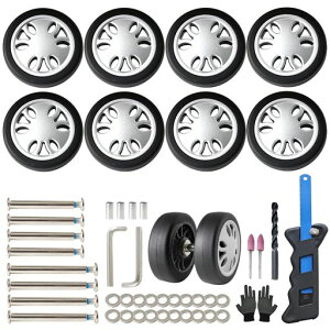 【送料無料】スーツケース キャスター 8個セット タイヤ 車輪補修用 取替え 修理 キャスター 交換 タイヤ 取り付け簡単 交換用車輪 (直径55mm-8個セット)ブランド色シルバーモデル直径55mm...
