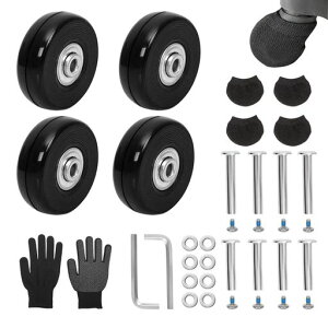 スーツケース用のタイヤ4個セットです。 《付属品》 ・タイヤ1個につきネジ×1個(合計4個) ・35mmのシャフト4本 ・ワッシャー×8個 ・六角レンチ×4個。
