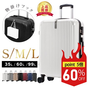 泊:3〜5泊;L-71x35x27cm容量:82L重量:4.5kg宿泊:5〜7泊 【表面素材】スーツケースはABS樹脂とPCでの混合素材で作られ、耐衝...